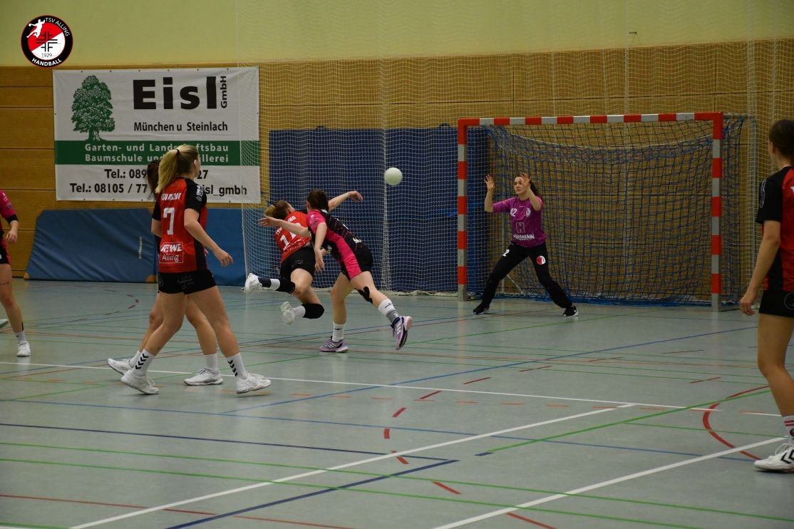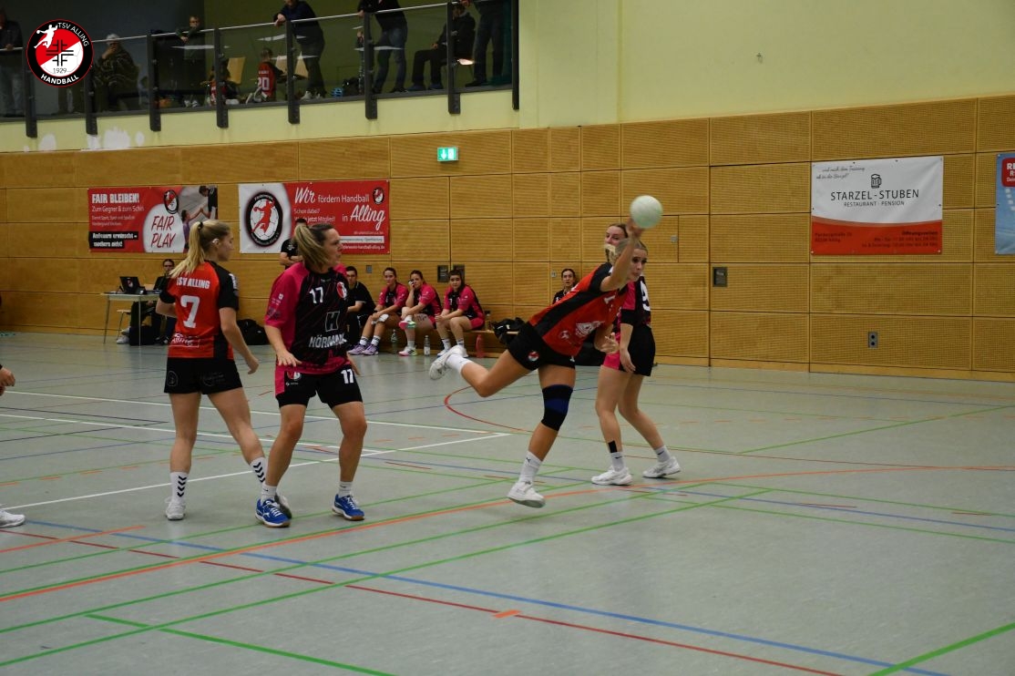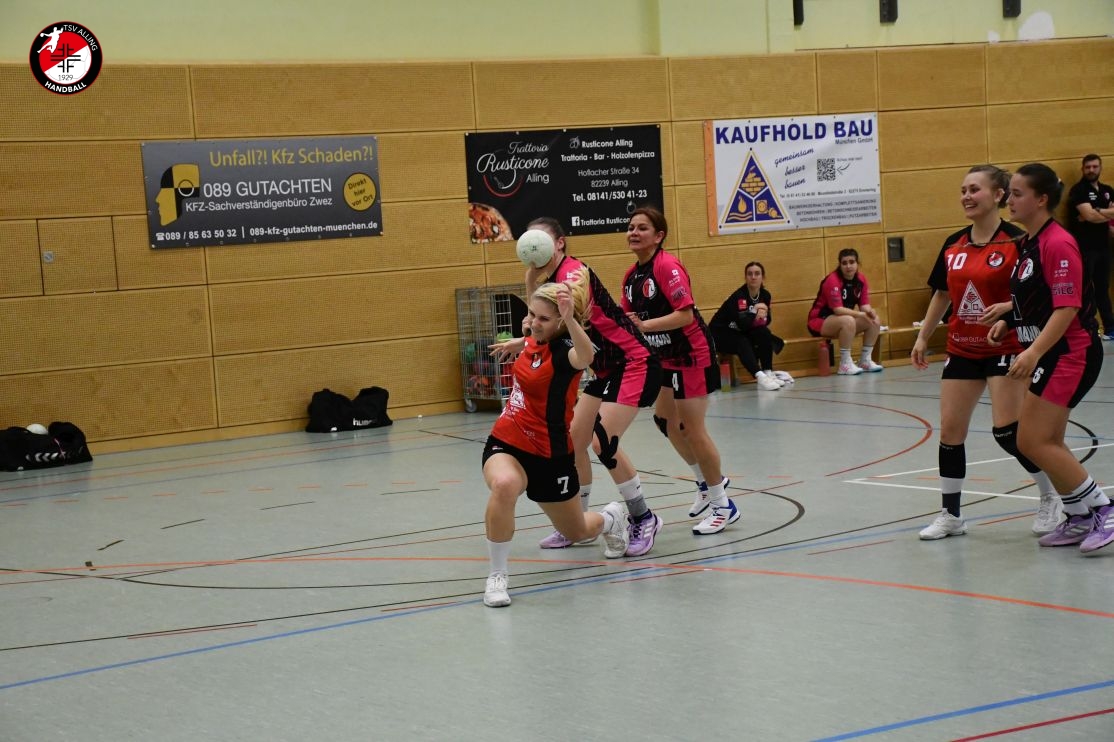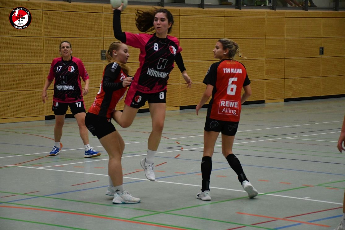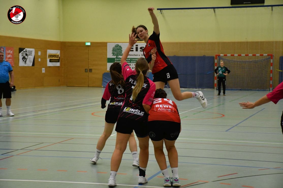 Danach musste man das Spiel phasenweise etwas laufen lassen, sodass die Gastgeberinnen ihre Chancen konsequent nutzten und bis zur Halbzeitpause einen Vier-Tore-Vorsprung herausspielten (15:11).In der Kabine schwor sich das Team aus Alling noch einmal ein, mit frischem Mut in die zweite Hälfte zu gehen. Zwar gelang es zunächst nicht, den Rückstand entscheidend zu verkürzen, im Gegenteil: Bad Tölz konnte den Vorsprung zwischenzeitlich weiter ausbauen.