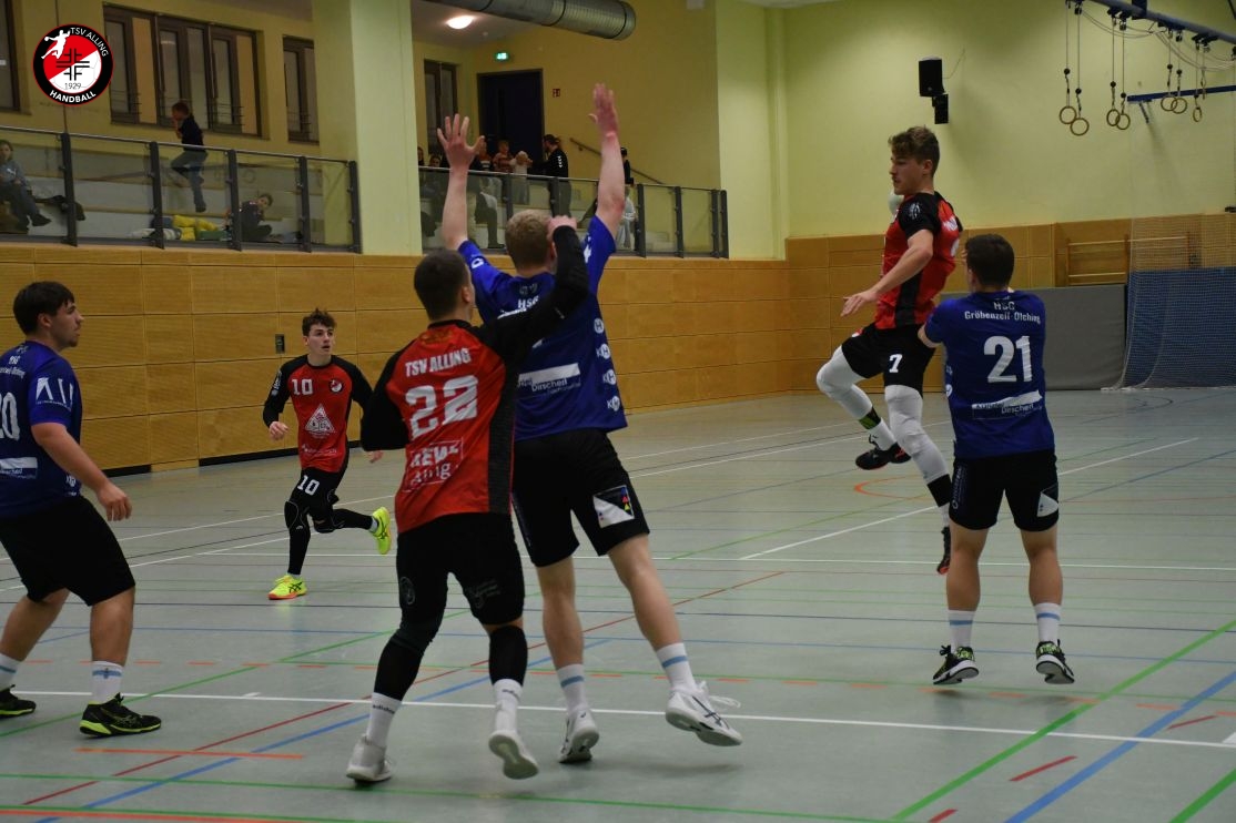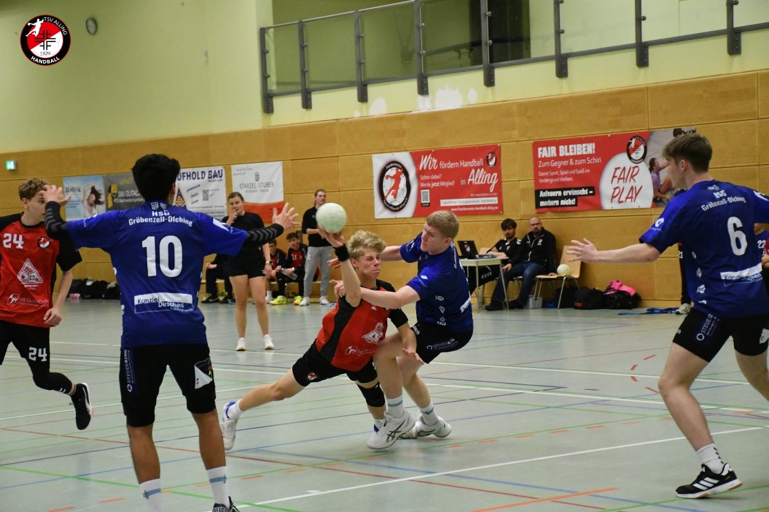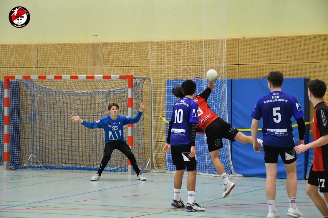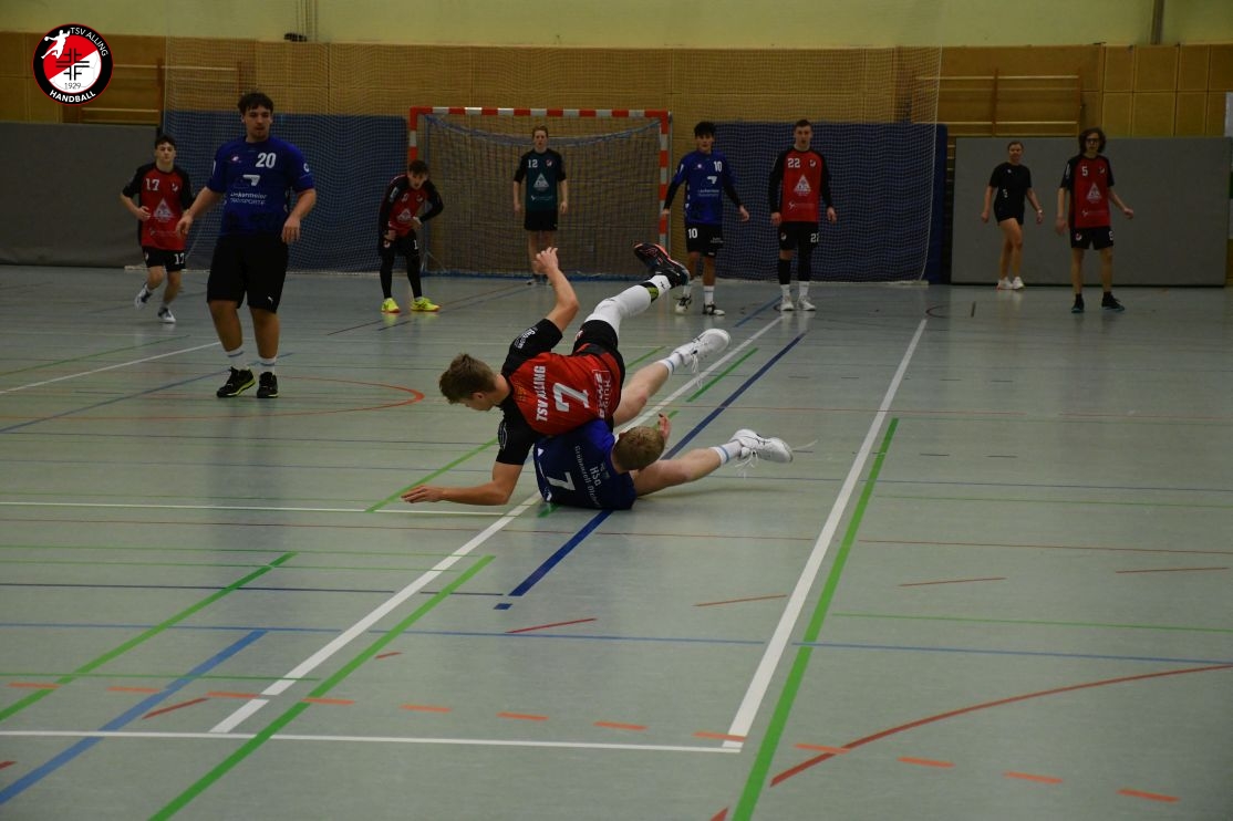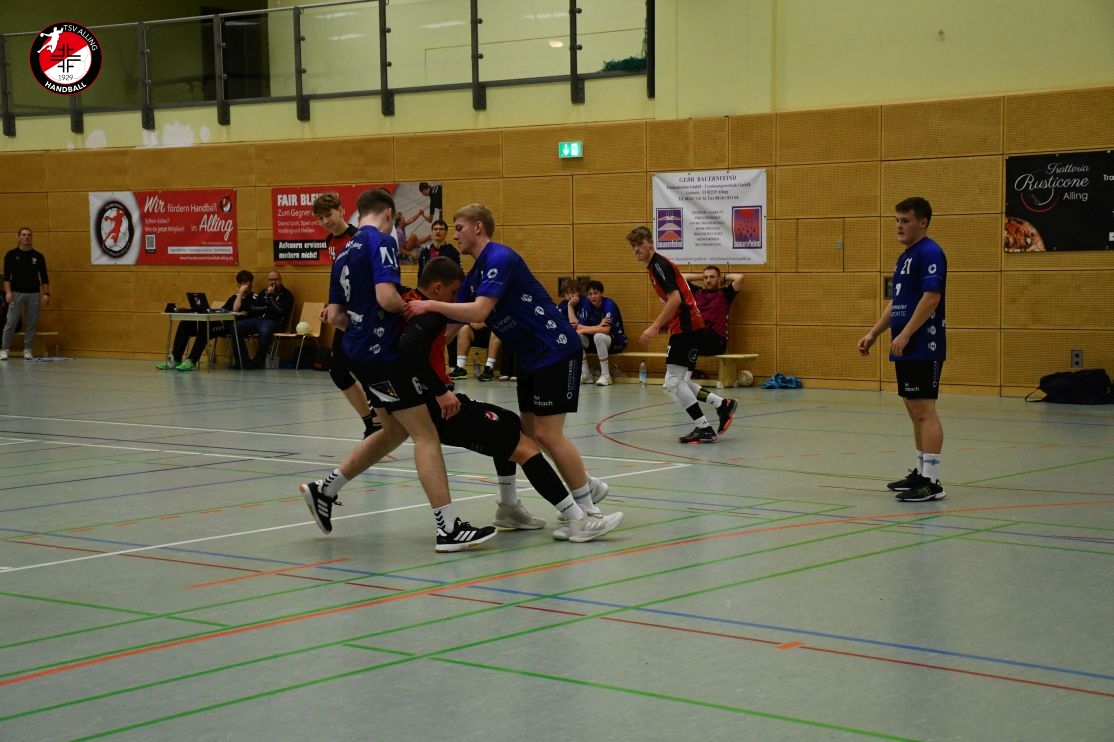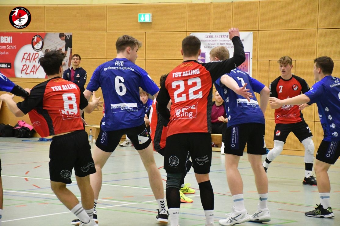 Das Spiel der A-Jugend des TSV Alling am 7. Dezember gegen die HSG Gröbenzell-Olching war eines dieser Spiele, bei denen das Ergebnis – 29:40 – zwar deutlich aussieht, aber nicht das ganze Bild zeigt. Denn was die Jungs auf dem Feld gezeigt haben, war vor allem: Teamgeist, Einsatz und jede Menge Herzblut. Schon vor Anpfiff war klar, dass es kein einfacher Tag werden würde. Einige Spieler waren angeschlagen oder nicht ganz fit, aber es gab kein Jammern, keine Ausreden – stattdessen war sofort zu spüren: Heute wird zusammengehalten und gekämpft. Und genau so ging das Team ins Spiel. Die Gäste legten los wie die Feuerwehr, doch Alling hielt dagegen. Zwar war die gegnerische Abwehr dicht und ließ nur wenig zu, doch die Jungs gaben nicht auf. Jedes Tor musste sich hart erarbeitet werden, aber das hielt niemanden davon ab, es immer wieder zu versuchen. Mit viel Geduld, Bewegung und Unterstützung von der Bank kämpfte sich das Team durch die erste Hälfte und blieb zur Pause mit 15:20 in Schlagdistanz. Nach dem Seitenwechsel wurde es nicht leichter – Gröbenzell-Olching blieb druckvoll und nutzte jede kleine Unkonzentriertheit gnadenlos aus. Trotzdem ließ Alling den Kopf nicht hängen. Es wurde weiter alles reingeworfen: in der Abwehr wurde gekämpft, im Angriff nach Lösungen gesucht, und jeder Torerfolg wurde gemeinsam gefeiert. Auch als der Rückstand wuchs, hörte das Team nicht auf, an sich zu glauben. Man merkte: Jeder stand für den anderen