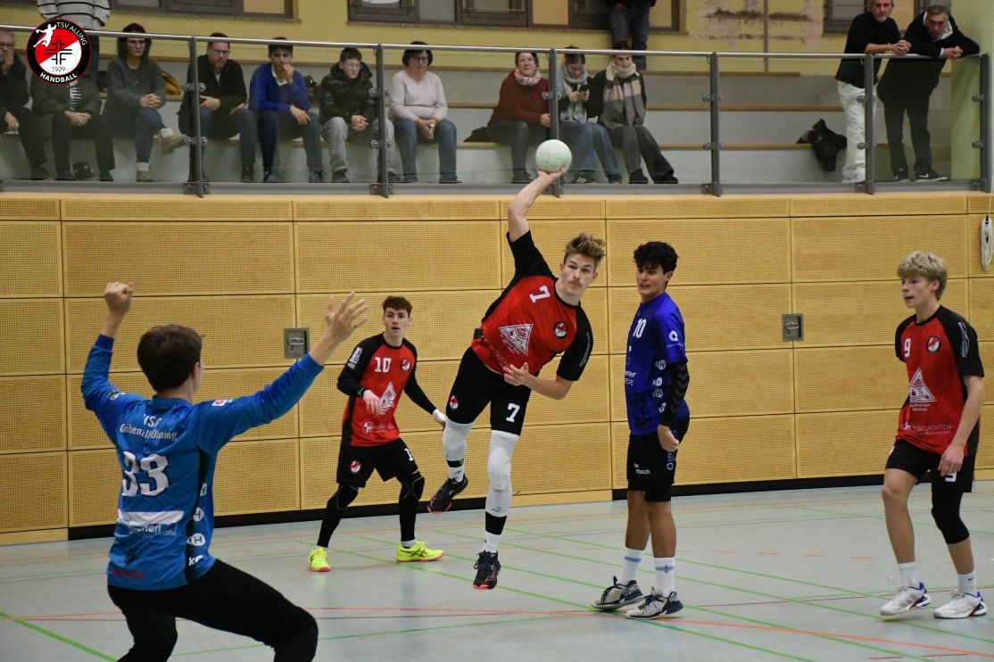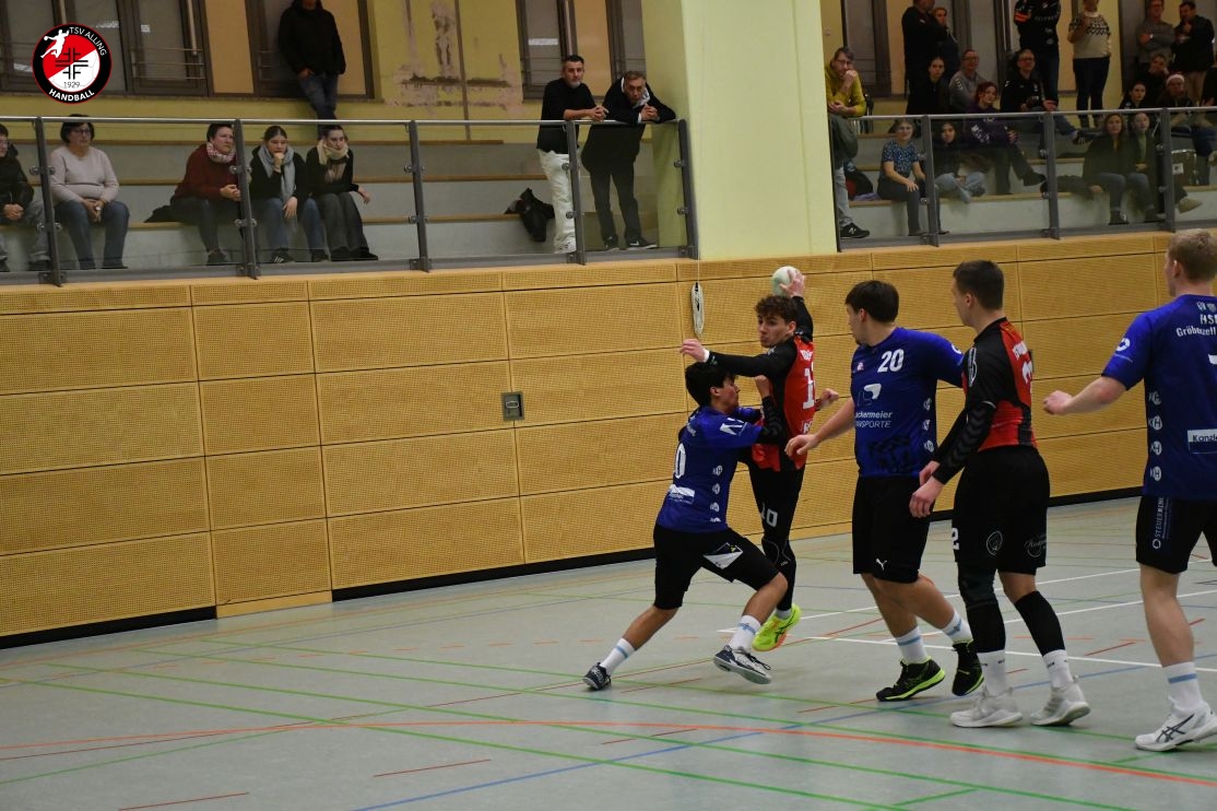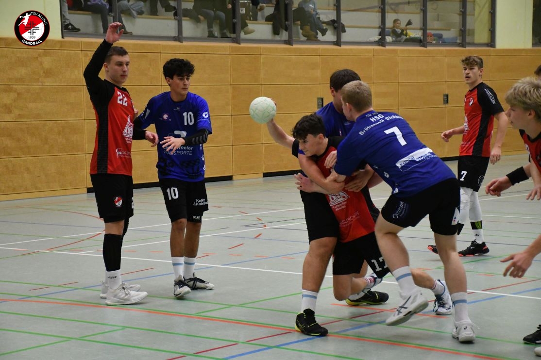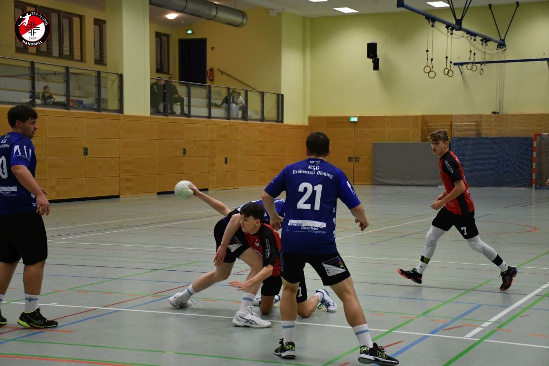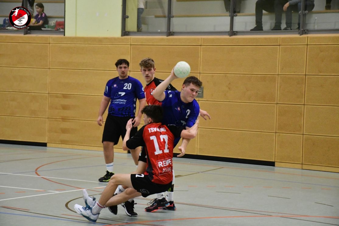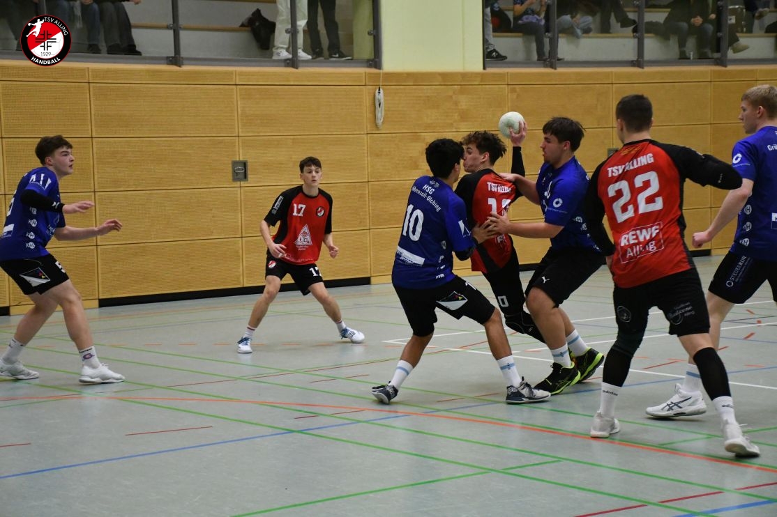 Das Spiel der A-Jugend des TSV Alling am 7. Dezember gegen die HSG Gröbenzell-Olching war eines dieser Spiele, bei denen das Ergebnis – 29:40 – zwar deutlich aussieht, aber nicht das ganze Bild zeigt. Denn was die Jungs auf dem Feld gezeigt haben, war vor allem: Teamgeist, Einsatz und jede Menge Herzblut. Schon vor Anpfiff war klar, dass es kein einfacher Tag werden würde. Einige Spieler waren angeschlagen oder nicht ganz fit, aber es gab kein Jammern, keine Ausreden – stattdessen war sofort zu spüren: Heute wird zusammengehalten und gekämpft. Und genau so ging das Team ins Spiel. Die Gäste legten los wie die Feuerwehr, doch Alling hielt dagegen. Zwar war die gegnerische Abwehr dicht und ließ nur wenig zu, doch die Jungs gaben nicht auf. Jedes Tor musste sich hart erarbeitet werden, aber das hielt niemanden davon ab, es immer wieder zu versuchen. Mit viel Geduld, Bewegung und Unterstützung von der Bank kämpfte sich das Team durch die erste Hälfte und blieb zur Pause mit 15:20 in Schlagdistanz. Nach dem Seitenwechsel wurde es nicht leichter – Gröbenzell-Olching blieb druckvoll und nutzte jede kleine Unkonzentriertheit gnadenlos aus. Trotzdem ließ Alling den Kopf nicht hängen. Es wurde weiter alles reingeworfen: in der Abwehr wurde gekämpft, im Angriff nach Lösungen gesucht, und jeder Torerfolg wurde gemeinsam gefeiert. Auch als der Rückstand wuchs, hörte das Team nicht auf, an sich zu glauben. Man merkte: Jeder stand für den anderen