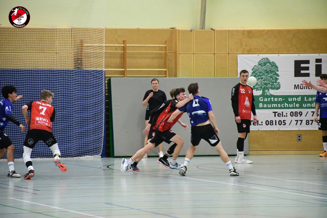 Nach 3 kräftezerrenden Spielen und aufgrund diverser Verletzungen und Blessuren standen dem Trainerteam nur noch acht Feldspieler zur Verfügung. Schnell lag der TSV Alling mit 3 Tore im Rückstand. Domenic Ahrend setzte daraufhin auf eine offensive 4-2-Deckung und schickte in den letzten zehn Minuten eine kompromisslose Manndeckung aufs Feld. Doch der Rückstand ließ sich nicht mehr ganz egalisieren. Die Tanks waren leer, für eine vollständige Aufholjagd fehlten zudem noch die Wechseloptionen.