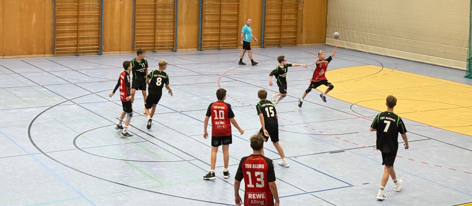 Bei der Grundaggressivität einiger Akteure auf der Tribüne und auf der Bank in Reihe der genannten Mannschaften, v.a gegen die Schiedsrichter gerichtet, wäre es vielleicht sowieso angenehmer diesen in der Saison nicht mehr begegnen zu müssen.[videopack id=”41775″]https://handball-alling.de/wp-content/uploads/2025/05/VID-20250518-WA0017-1.mp4[/videopack]Somit war klar, dass an diesem Tag nur im Duell gegen die Gastgeber aus Murnau etwas drin war. Das Spiel war geprägt von wenigen Highlights und viel Stückwerk. Da unsere Abwehr aber konsequent und vorbildlich arbeitete und vorne die ein oder andere Einzelaktion klappte, sprang ein Sieg in Höhe von 11:7 dabei heraus. Das Mindestziel des 4. Platzes wurde damit erreicht und so gelang in den zwei Qualiturnieren wichtige Spielpraxis. Die Jungs können stolz auf sich sein, da der spontane Sprung von D- Jugend zu C- Jugend nicht einfach ist.