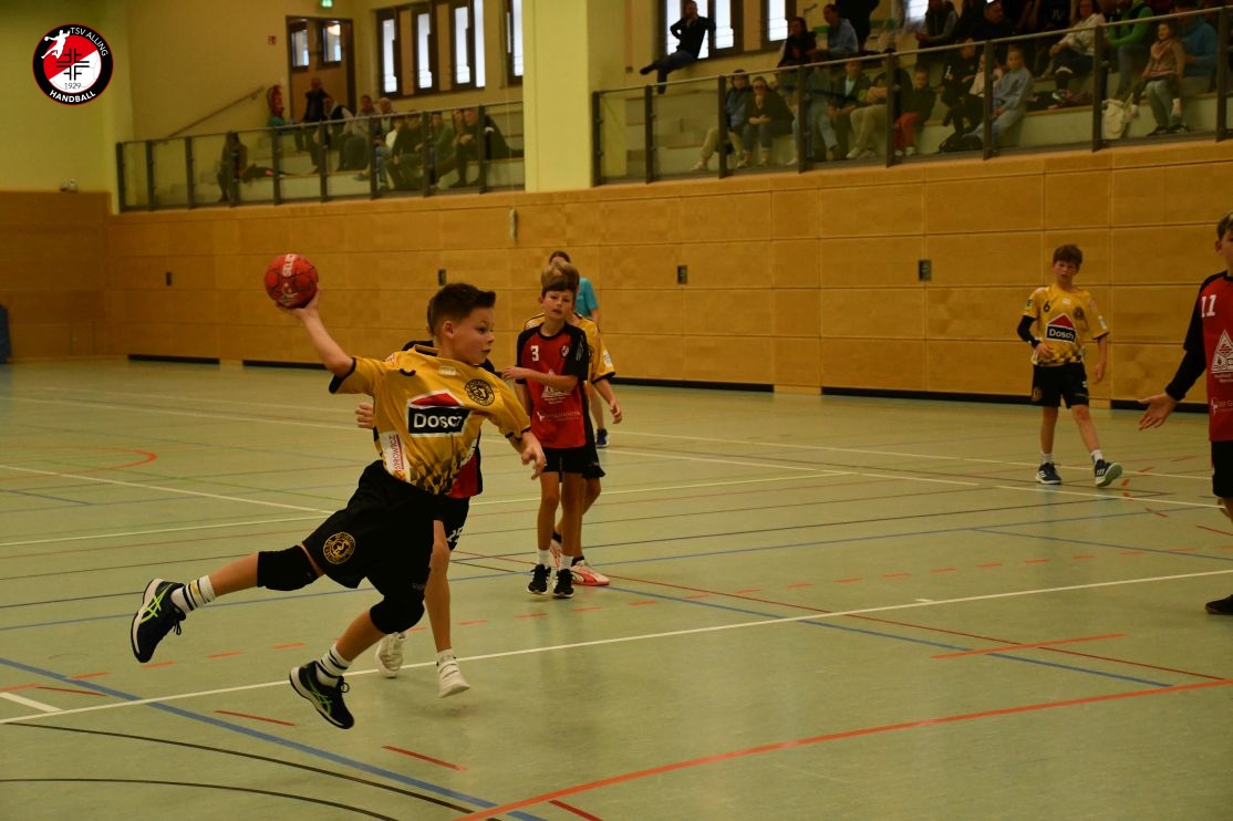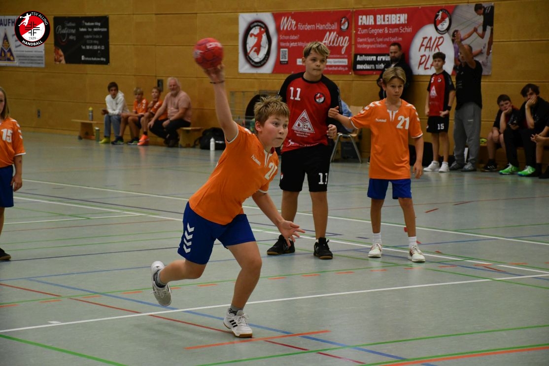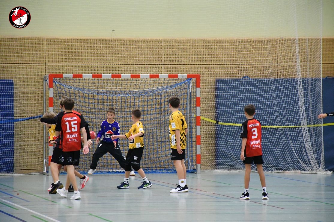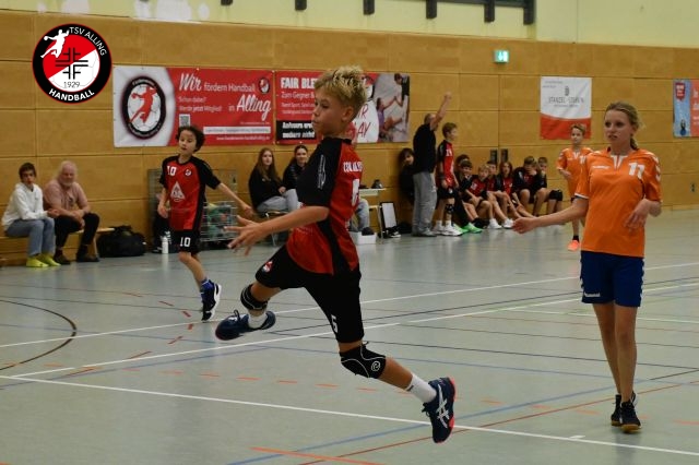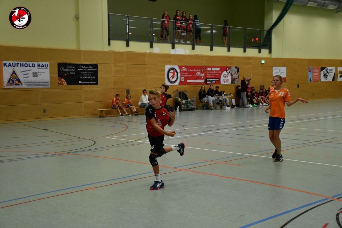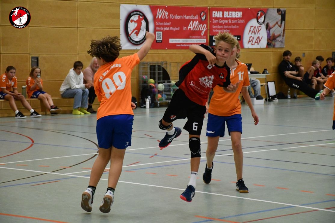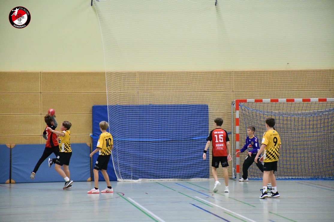 Zu diesem Zeitpunkt fiel dann leider Spielgestalter Julius aus und Hektik machte sich im Spielaufbau breit, sodass die Herrschinger zu einigen einfachen Toren im Gegenstoß kamen. In den letzten Minuten wurde der Rückstand allerdings konstant gehalten und vor allem vorne im Angriff wurde eine gute Leistung gezeigt, während in der Abwehr der Qualitätsunterschied immer eindeutiger wurde. Ein 19:33 war als Entstand die logische Konsequenz. Ein Ergebnis, auf das das junge Allinger Team gegen einen spielerisch guten Gegner aus größtenteils dem älteren Jahrgang trotzdem stolz sein kann. Großes Kompliment an die 8 Jungs, die kräftetechnisch super mitgehalten haben und zu jeder Zeit vollen Einsatz zeigten. Weiter so!