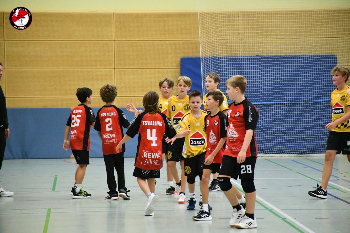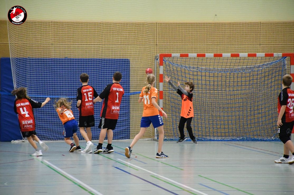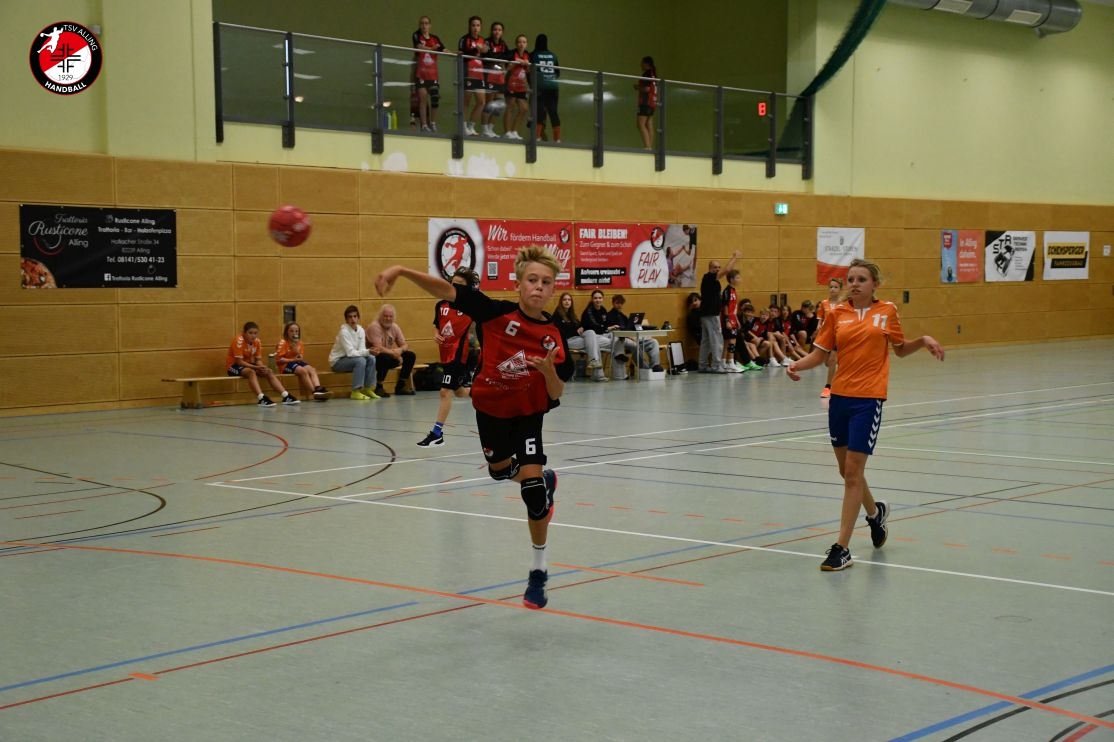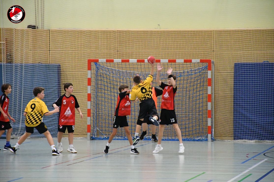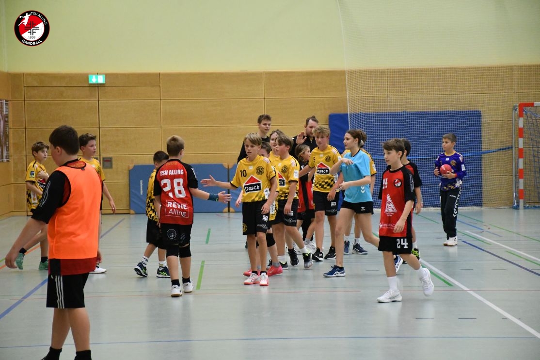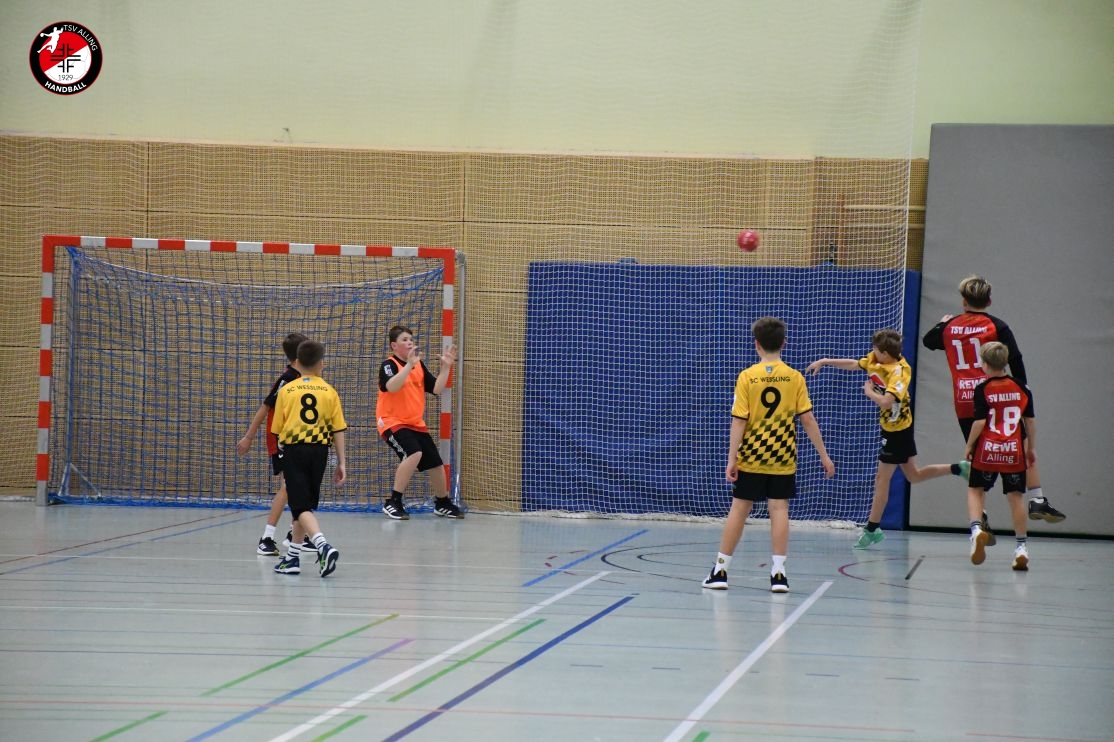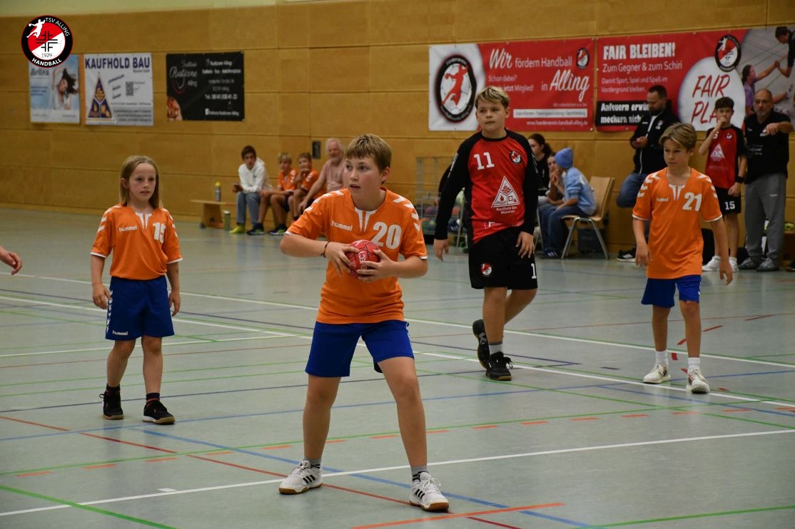 Zu diesem Zeitpunkt fiel dann leider Spielgestalter Julius aus und Hektik machte sich im Spielaufbau breit, sodass die Herrschinger zu einigen einfachen Toren im Gegenstoß kamen. In den letzten Minuten wurde der Rückstand allerdings konstant gehalten und vor allem vorne im Angriff wurde eine gute Leistung gezeigt, während in der Abwehr der Qualitätsunterschied immer eindeutiger wurde. Ein 19:33 war als Entstand die logische Konsequenz. Ein Ergebnis, auf das das junge Allinger Team gegen einen spielerisch guten Gegner aus größtenteils dem älteren Jahrgang trotzdem stolz sein kann. Großes Kompliment an die 8 Jungs, die kräftetechnisch super mitgehalten haben und zu jeder Zeit vollen Einsatz zeigten. Weiter so!