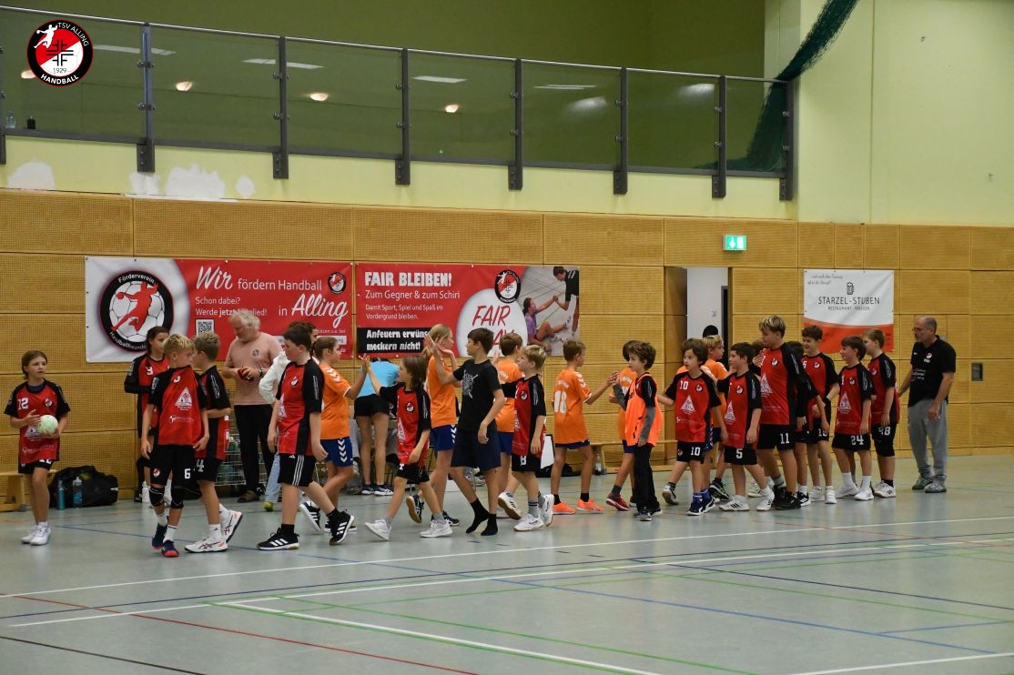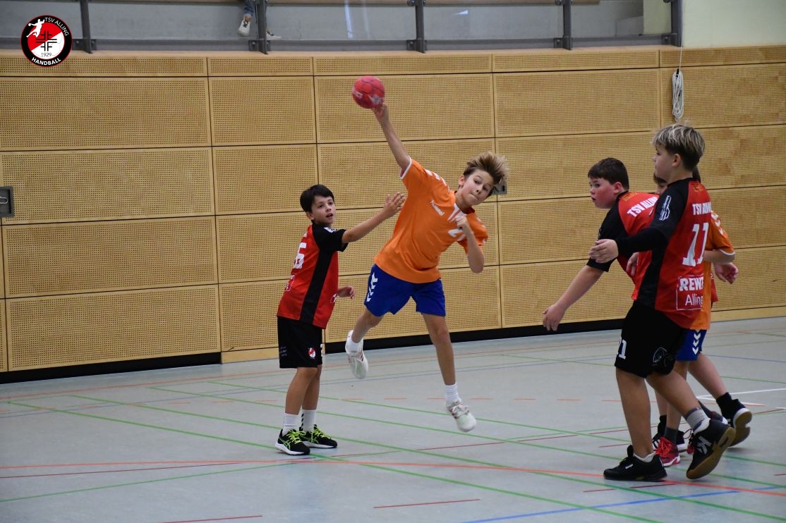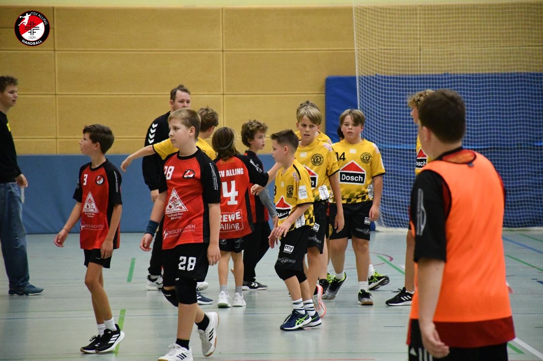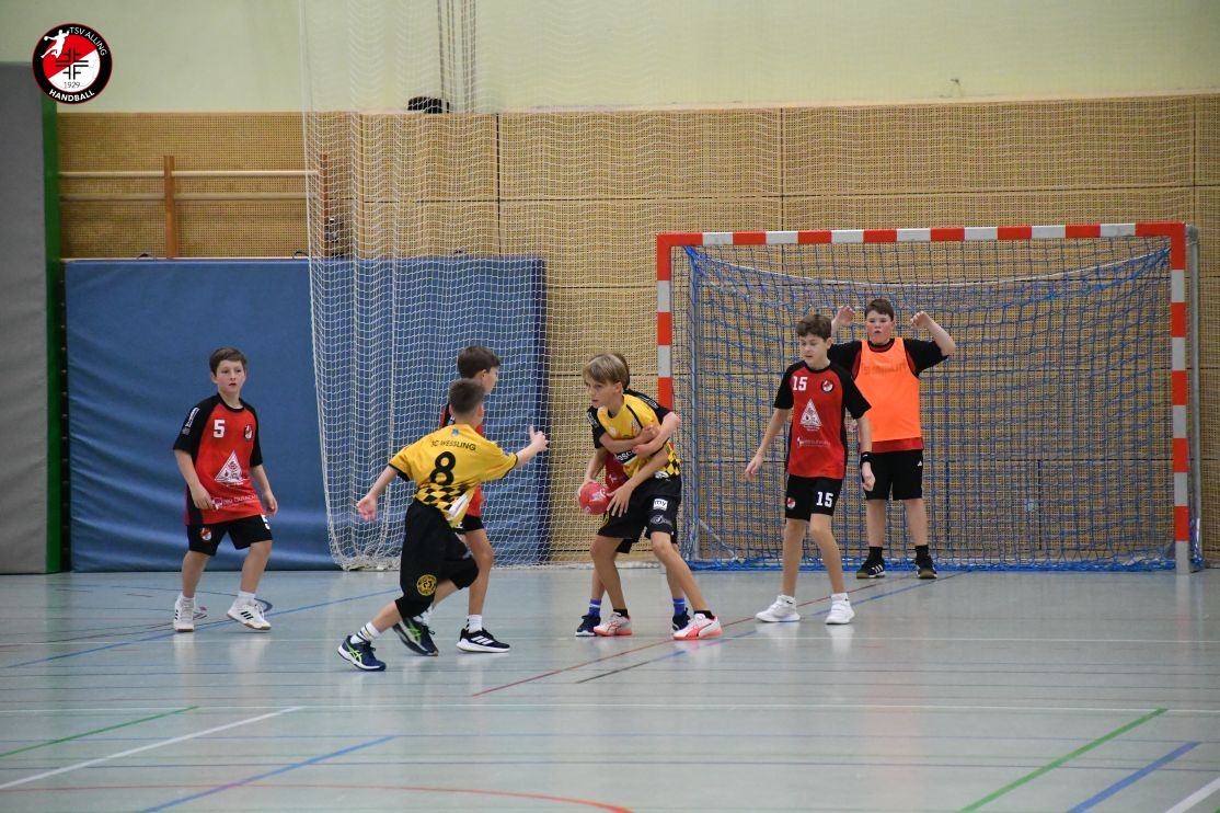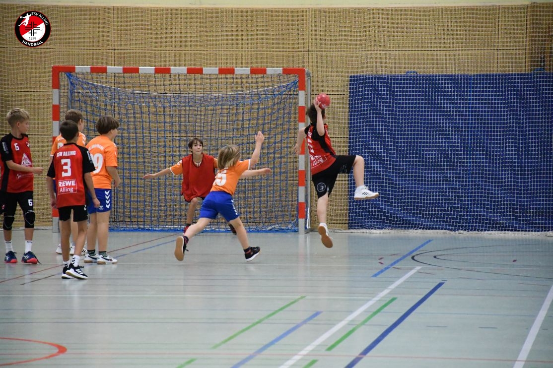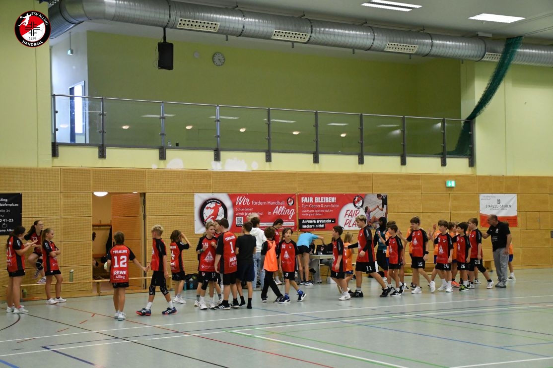 Zu diesem Zeitpunkt fiel dann leider Spielgestalter Julius aus und Hektik machte sich im Spielaufbau breit, sodass die Herrschinger zu einigen einfachen Toren im Gegenstoß kamen. In den letzten Minuten wurde der Rückstand allerdings konstant gehalten und vor allem vorne im Angriff wurde eine gute Leistung gezeigt, während in der Abwehr der Qualitätsunterschied immer eindeutiger wurde. Ein 19:33 war als Entstand die logische Konsequenz. Ein Ergebnis, auf das das junge Allinger Team gegen einen spielerisch guten Gegner aus größtenteils dem älteren Jahrgang trotzdem stolz sein kann. Großes Kompliment an die 8 Jungs, die kräftetechnisch super mitgehalten haben und zu jeder Zeit vollen Einsatz zeigten. Weiter so!