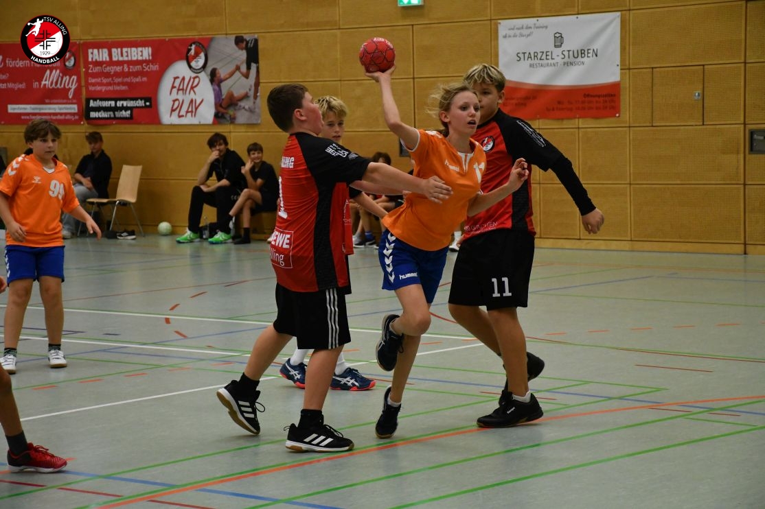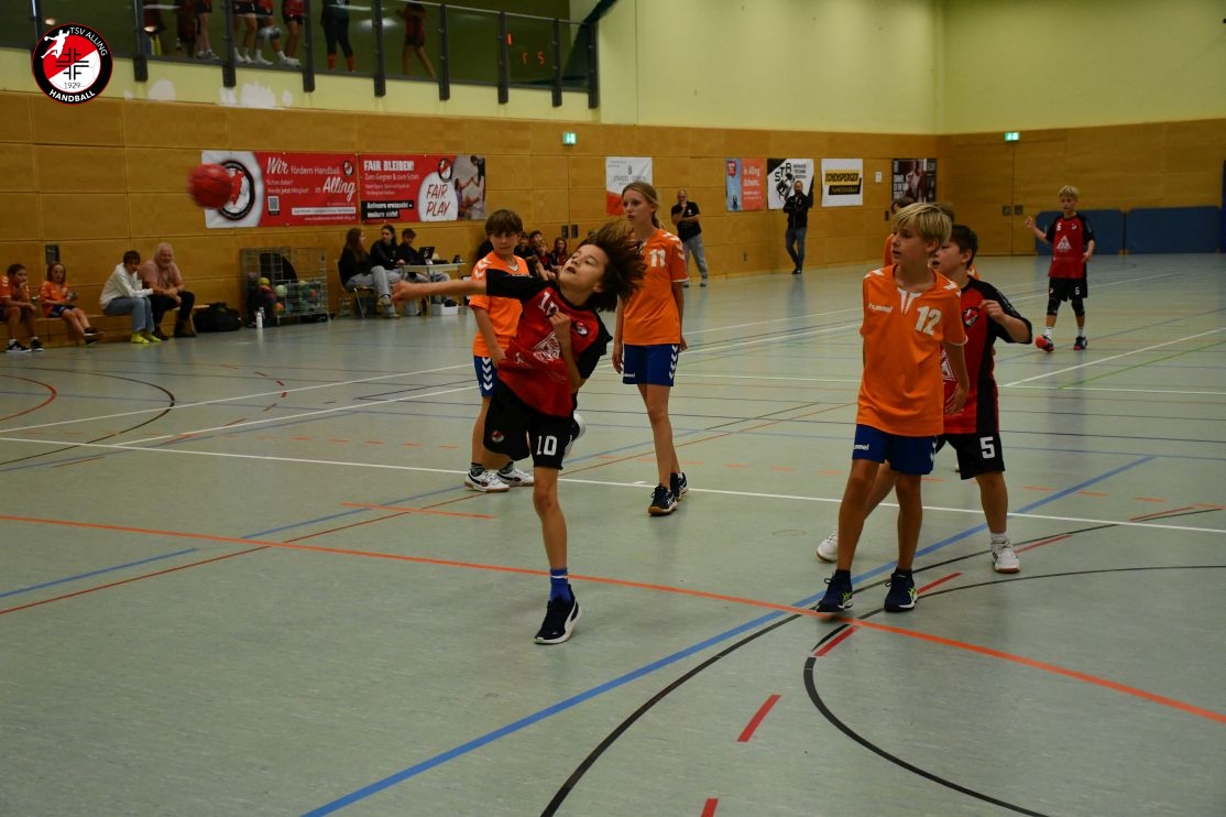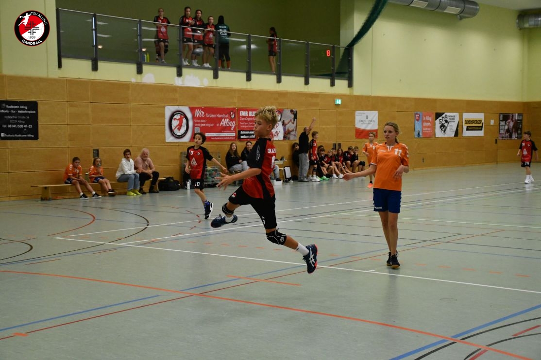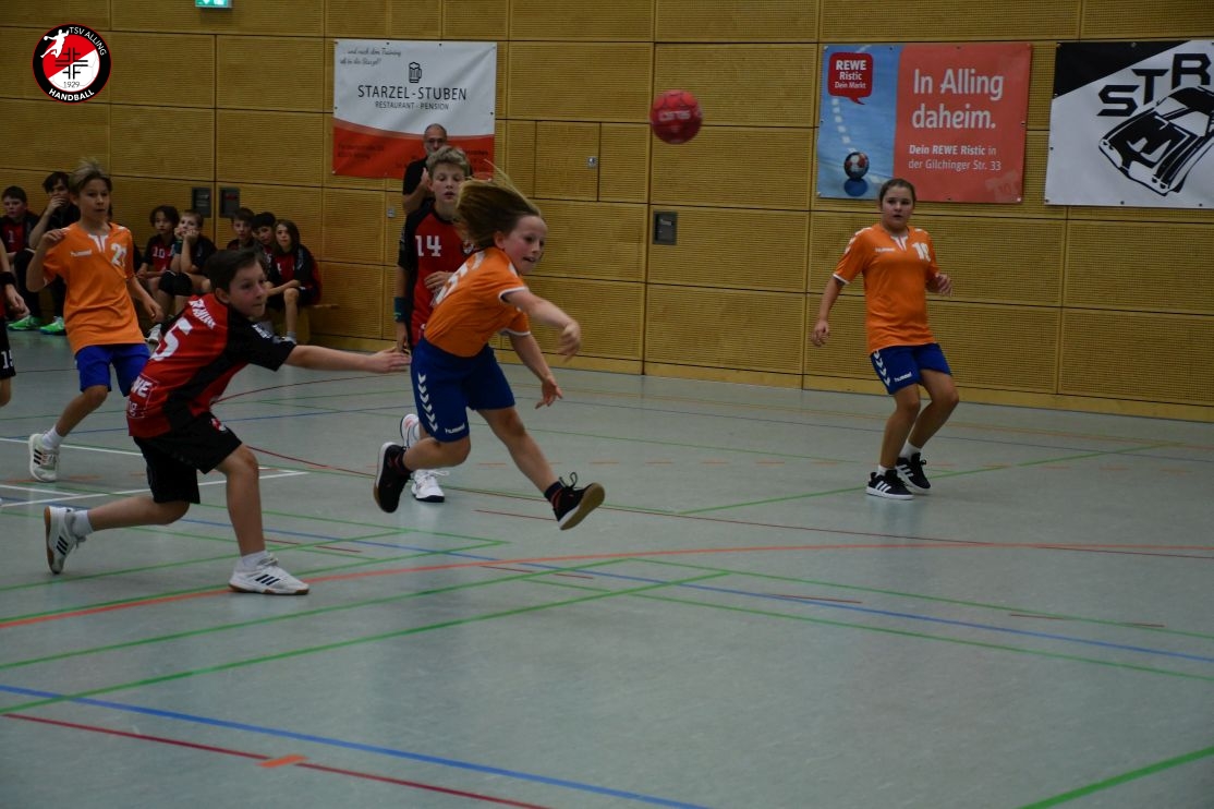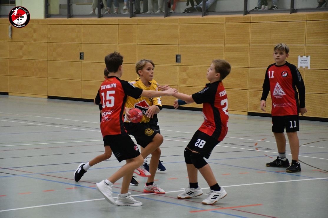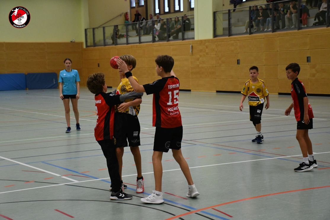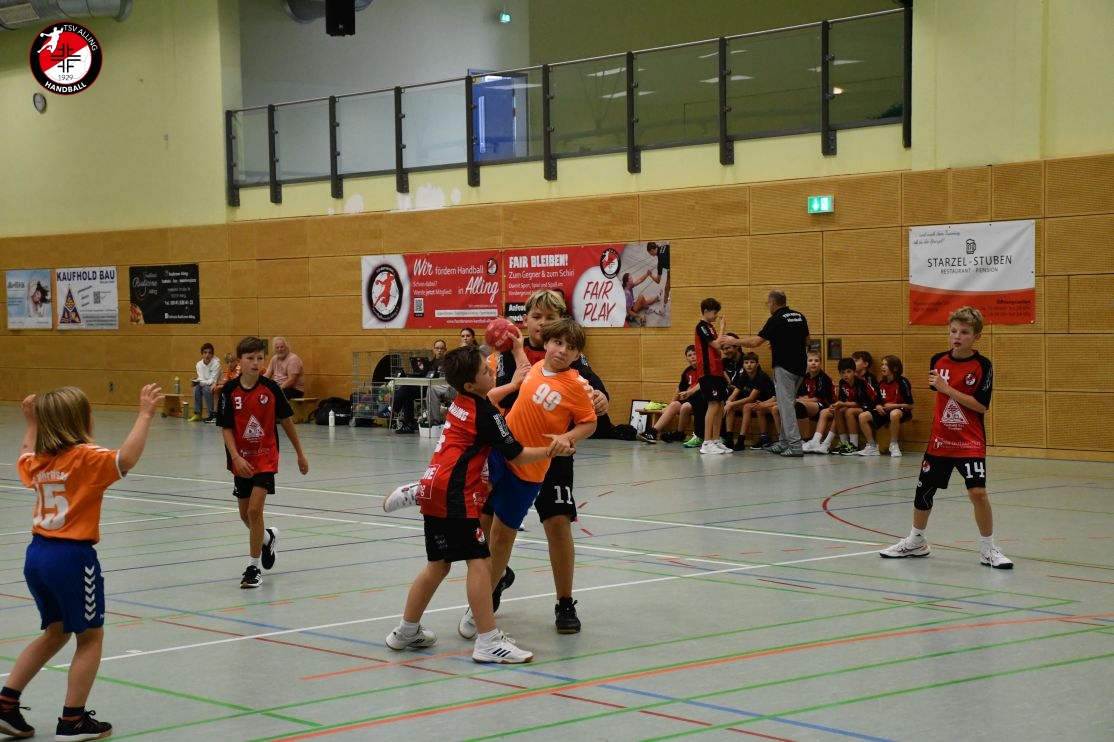 Zu diesem Zeitpunkt fiel dann leider Spielgestalter Julius aus und Hektik machte sich im Spielaufbau breit, sodass die Herrschinger zu einigen einfachen Toren im Gegenstoß kamen. In den letzten Minuten wurde der Rückstand allerdings konstant gehalten und vor allem vorne im Angriff wurde eine gute Leistung gezeigt, während in der Abwehr der Qualitätsunterschied immer eindeutiger wurde. Ein 19:33 war als Entstand die logische Konsequenz. Ein Ergebnis, auf das das junge Allinger Team gegen einen spielerisch guten Gegner aus größtenteils dem älteren Jahrgang trotzdem stolz sein kann. Großes Kompliment an die 8 Jungs, die kräftetechnisch super mitgehalten haben und zu jeder Zeit vollen Einsatz zeigten. Weiter so!