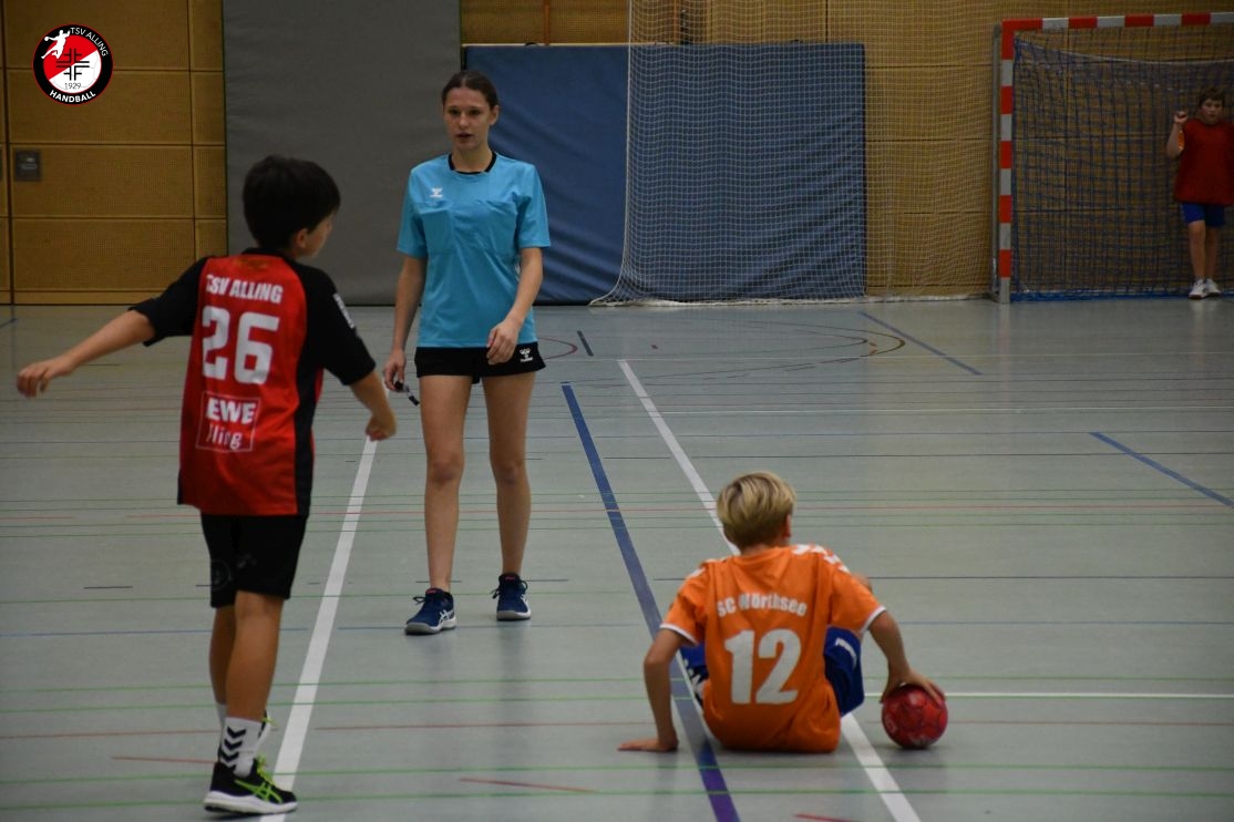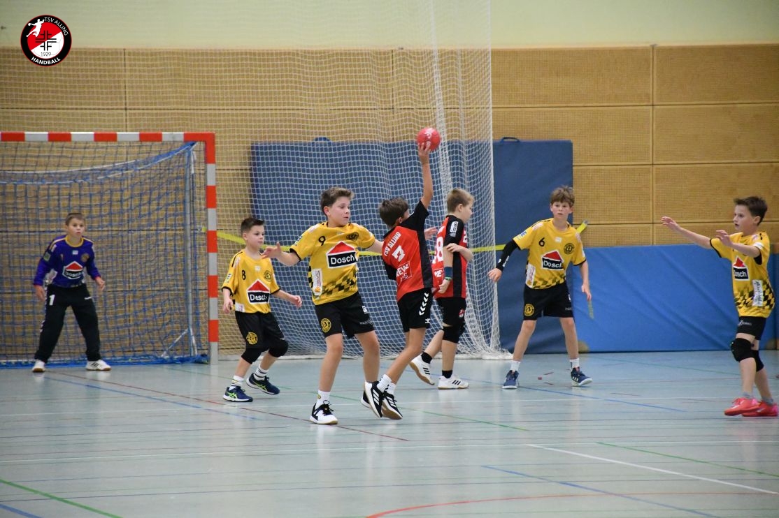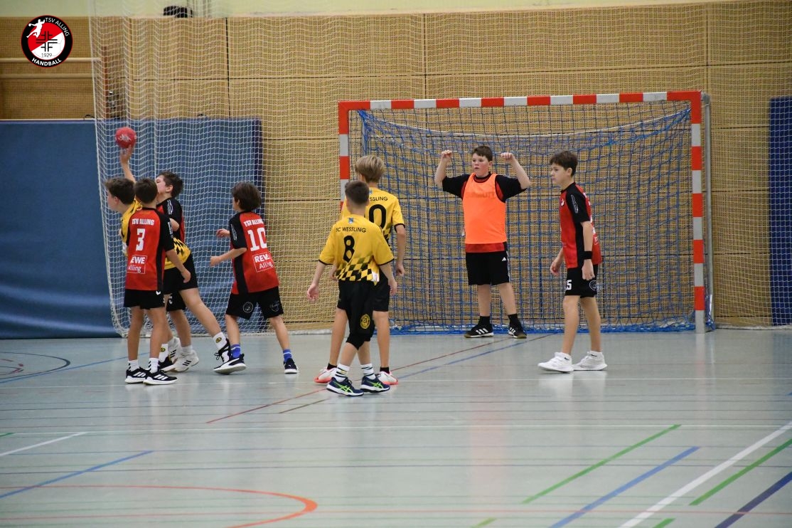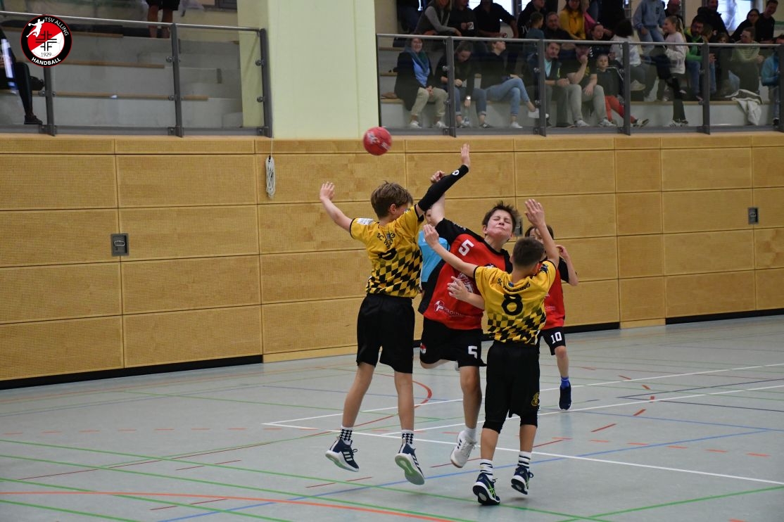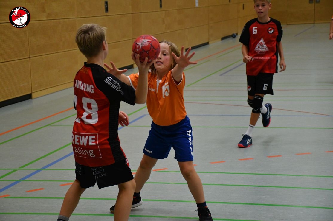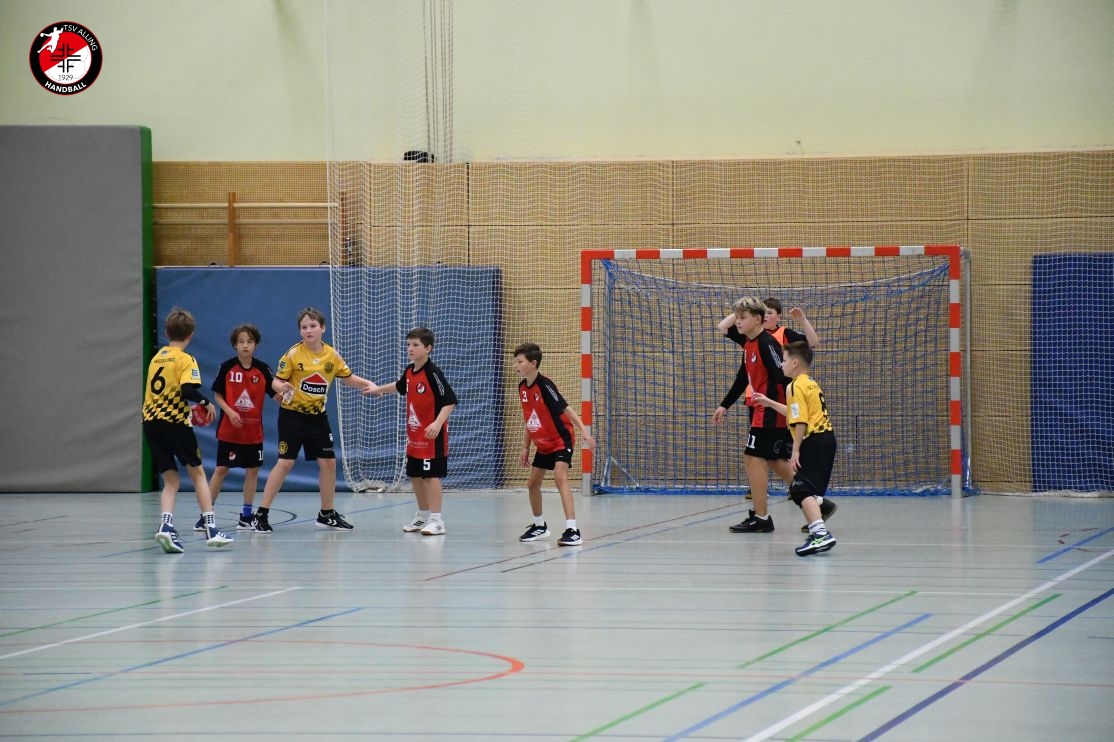 Zu diesem Zeitpunkt fiel dann leider Spielgestalter Julius aus und Hektik machte sich im Spielaufbau breit, sodass die Herrschinger zu einigen einfachen Toren im Gegenstoß kamen. In den letzten Minuten wurde der Rückstand allerdings konstant gehalten und vor allem vorne im Angriff wurde eine gute Leistung gezeigt, während in der Abwehr der Qualitätsunterschied immer eindeutiger wurde. Ein 19:33 war als Entstand die logische Konsequenz. Ein Ergebnis, auf das das junge Allinger Team gegen einen spielerisch guten Gegner aus größtenteils dem älteren Jahrgang trotzdem stolz sein kann. Großes Kompliment an die 8 Jungs, die kräftetechnisch super mitgehalten haben und zu jeder Zeit vollen Einsatz zeigten. Weiter so!