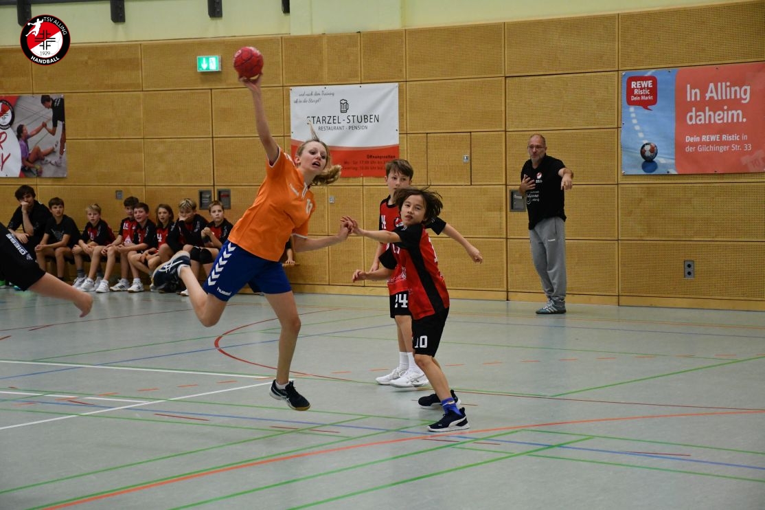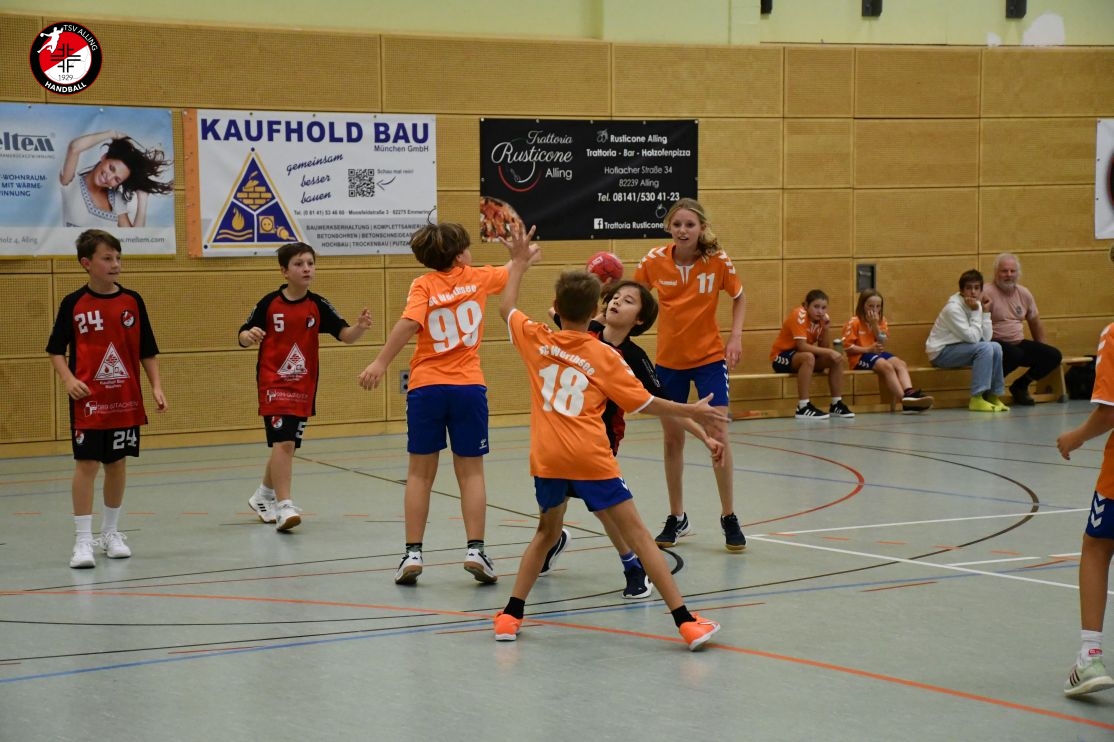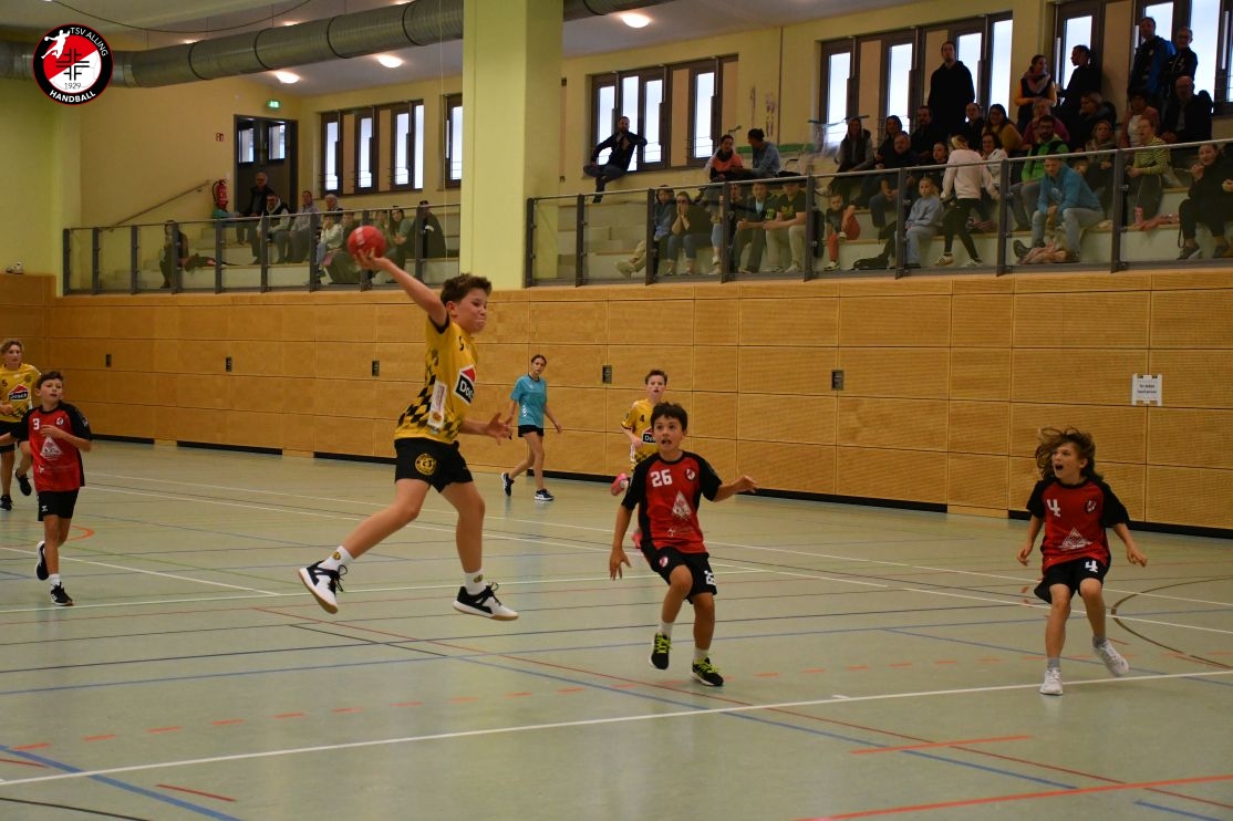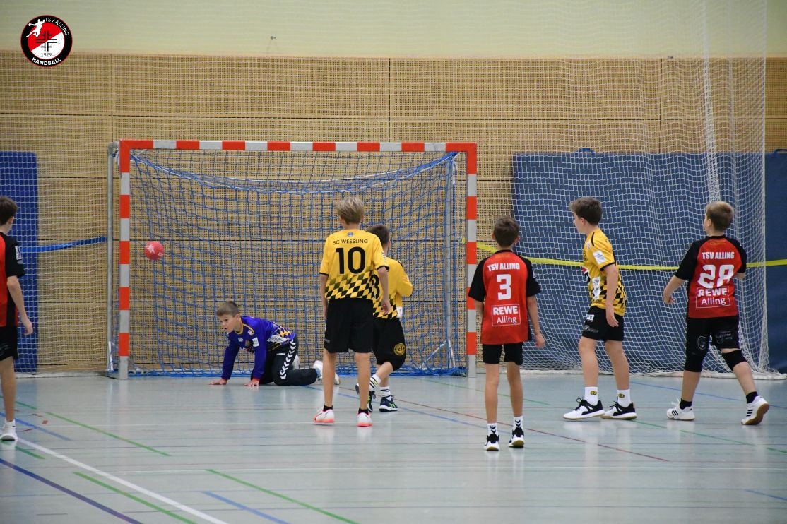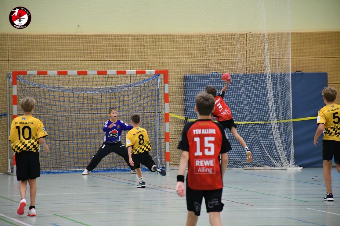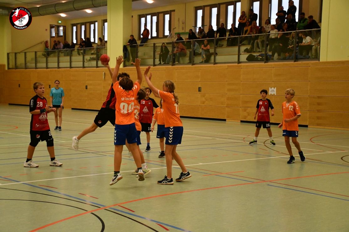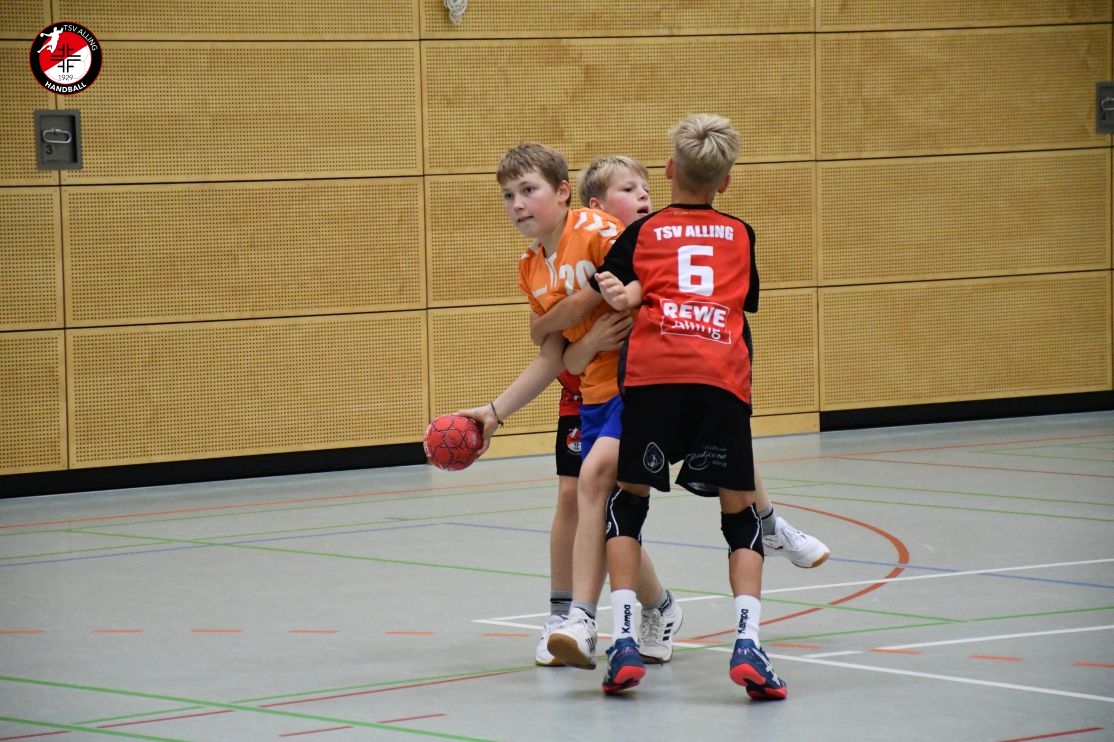 Zu diesem Zeitpunkt fiel dann leider Spielgestalter Julius aus und Hektik machte sich im Spielaufbau breit, sodass die Herrschinger zu einigen einfachen Toren im Gegenstoß kamen. In den letzten Minuten wurde der Rückstand allerdings konstant gehalten und vor allem vorne im Angriff wurde eine gute Leistung gezeigt, während in der Abwehr der Qualitätsunterschied immer eindeutiger wurde. Ein 19:33 war als Entstand die logische Konsequenz. Ein Ergebnis, auf das das junge Allinger Team gegen einen spielerisch guten Gegner aus größtenteils dem älteren Jahrgang trotzdem stolz sein kann. Großes Kompliment an die 8 Jungs, die kräftetechnisch super mitgehalten haben und zu jeder Zeit vollen Einsatz zeigten. Weiter so!