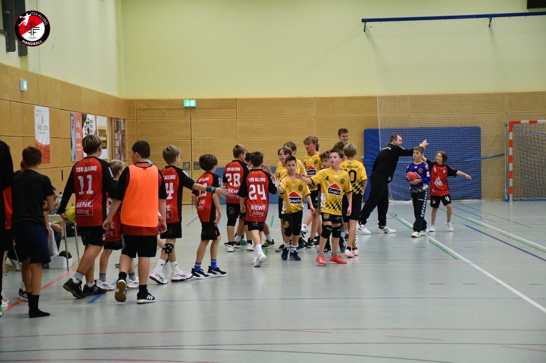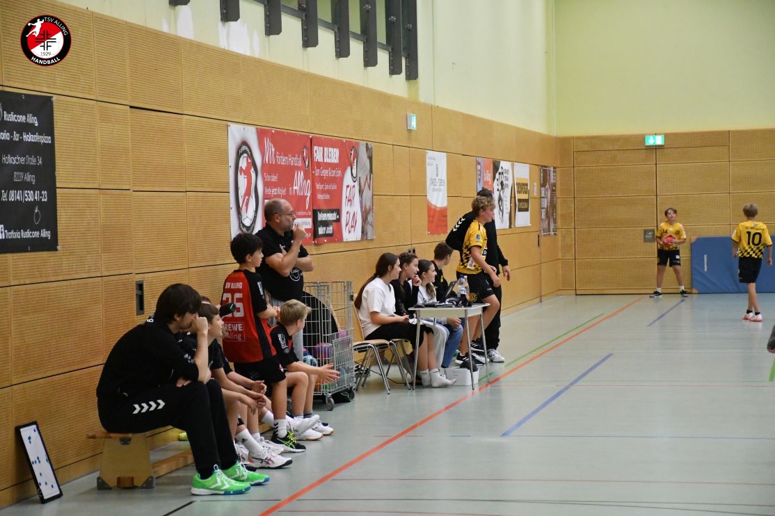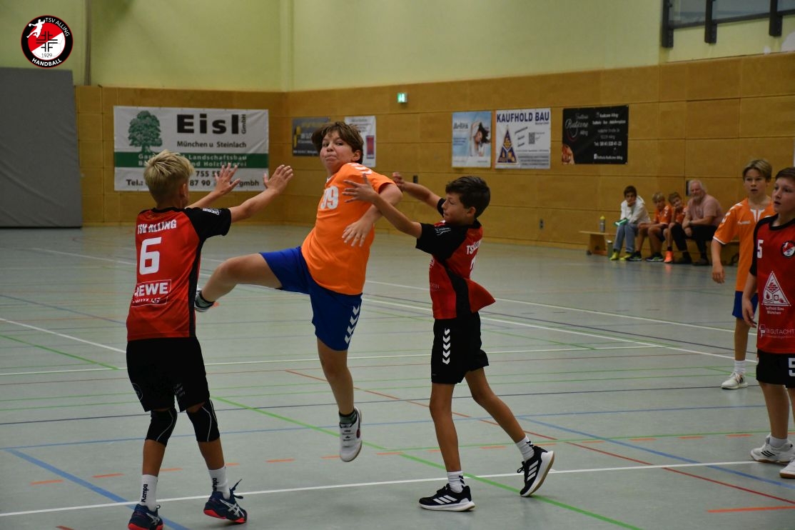 In einer längeren Spielpause der Saison konnte die männliche D-Jugend optimalerweise am Pullacher Turnier für die Schiedsrichterprüfung teilnehmen. Somit konnten eine Art Vorbereitung für unser nächstes Saison Turnier , zum ersten Mal vor heimische Kulisse in Alling, getätigt werden. Aufgrund der Ferien waren wir, vermutlich wie alle Mannschaften, nicht komplett besetzt und dankenswerterweise haben uns Leo H., Paul K. und Ludwig G. unterstützt. Die Erwartungen an Siege waren im Vorfeld nicht sonderlich groß, da unsere Konkurrenten große Vereine aus München in höheren Ligen (BL/BOL) spielen. Umso größer war die Freude, dass wir die ersten beiden Spiele gepunktet haben und trotz, jeweiligen zähem Starten aus den beiden Spielen 3:1 Punkte gesammelt haben. Mit jeweils starken Aufholjagden, Moral und Herz haben wir uns zu den Erfolgen gekämpft. Im dritten Spiel konnten wir allerdings die Serie nicht fortsetzten. Zum einem wurden wir vermutlich nun nicht mehr unterschätzt, zum anderen konnten wir der offensiven Abwehr und der Gegenstoß Geschwindigkeit des BOL Teams nicht entgegenhalten. Dies hat zwar am Ende des Tages die Freude, zwar ein bisschen getrübt, aber insgesamt haben wir an einem tollen Turnier teilgenommen. Die Pullacher haben ein Turnier mit anspruchsvollen Gegnern und gut ausgebildeten Schiedsrichtern organisiert. Danke hierfür nach Pullach. Aus dem Turnier konnten wichtige Erkenntnisse für die nächsten Trainings gewonnen werden und somit sollten, am Ende alle zufrieden sein.