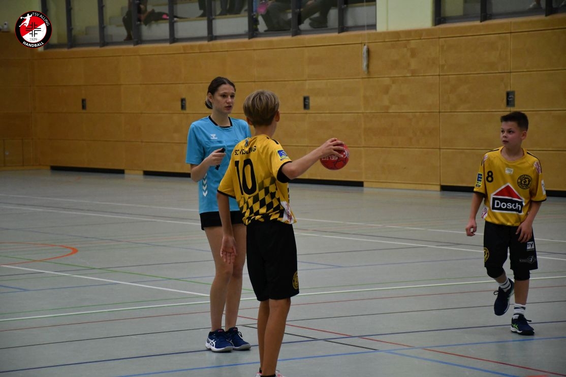 Unterstützt durch die Abwehr hat Seppi im Tor einiges gehalten und Max, Julius und Ludwig haben im Rückraum die Bälle gespielt, Tore geworfen und Lennard am Kreis in Position gebracht, woraus einige Tore entstanden. Auf den Außenpositionen haben sich Felix und Leonhard abgewechselt und sowohl in der Abwehr, als im Angriff verdichtet, sowie die Spielachse verbreitert und durch Einlaufen Torchancen erzwungen.